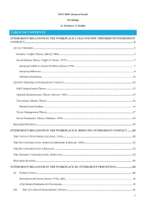 Covers Advanced Social Psyc. Contents Page Organised by course criteria Contains theory notes Contains diagrams Contains research/literature examples