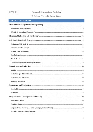 Covers Advanced Organisational Psyc. Contents Page Organised by course criteria Contains theory notes Contains diagrams Contains research/literature examples