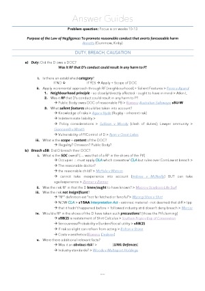 Notes begin with guide on how to structure an answer to problem questions. This guide is followed by detailed notes organised by topic and includes case briefs on the important cases and their facts.