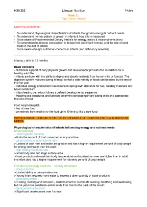 My study notes are a mixture from lectures, readings and the study guide covering the learning objectives for HSN202.