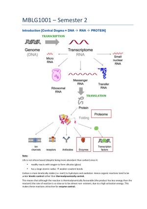 Comprehensive summary of the MBLG1001 lecture and practical content. Beautifully drawn tables and diagrams to assist your understanding of difficult concepts of replication, transcription and translation. If you are on a budget, these are the notes for you to get through the final exam!