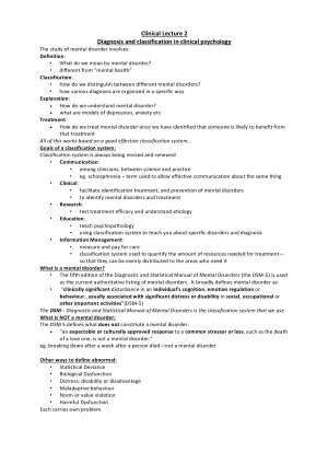 This is Part 2 of my MBB2 Summary Notes (Part 1 is on a separate file) These are my H1 (92) summary lecture and tutorial notes for Mind Brain Behaviour 2. I didn't do MBB1 so I had to do more of my own research! My notes includes in depth explanations for the concepts which I missed in MBB1. Some concepts were also rushed over in lectures/tutorials in MBB2 so my notes have my own research to explain concepts. I've highlighted in different colours the various ways I used to help memorise the million ideas that are covered. I also point out which areas the lectures wanted us to focus on. Because student VIP has an upload limit, I had to split my notes into 2 parts. I had too many words!! haha THIS second part includes notes for: - Personality notes - Clinical Psychology notes -- personally I found this part the hardest so I have A LOT of in depth explanations The first part of my notes (in a separate file/link) covers: - Human Development - Social Psychology - Research/ Quantitative Methods Thank you! :) And Good luck!