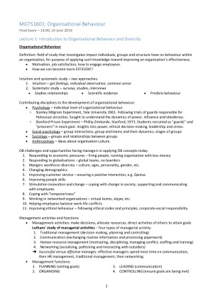 Extremely comprehensive. Covers and summarizes all content for MGTS1601. Sample only shows topic one.