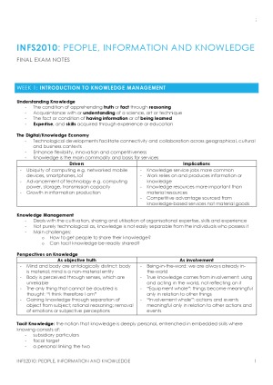 Subject notes for USYD INFS2010
