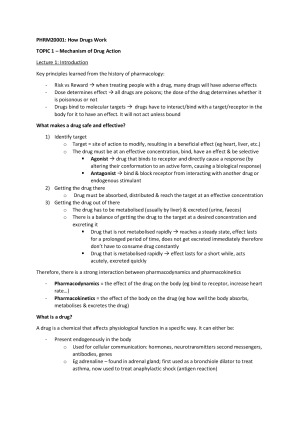 Complete lecture materials, inclusive of workshop material and mindmap/tables to improve understanding for PHRM20001.