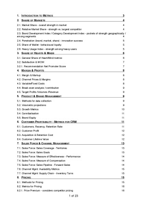 Summary of the subject 'Marketing Metrics' Includes examples, tables and everything you need to know to rock that subject. ;)