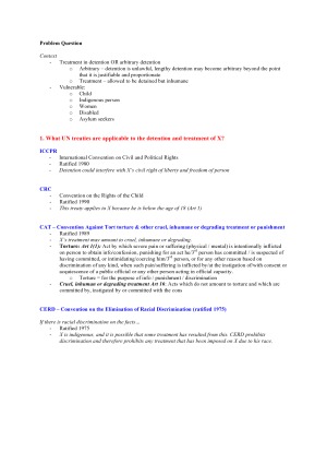 These are exam notes which will allow you to answer step by step, any question in the exam regarding what human rights have been breached. Very clear, concise and straight forward, without missing out anything important. I completed this subject in Semester 1 2016 and got 81. See sample.