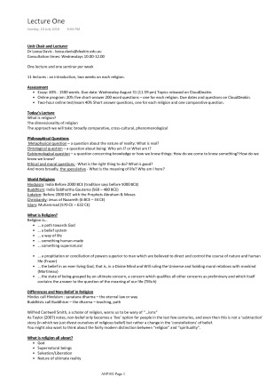 Complete Lecture and Seminar notes from World Religions at Deakin