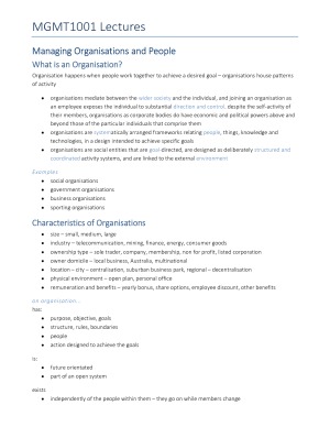 Summary notes from lectures and textbook (Managing Organisations and People 3rd Ed)
