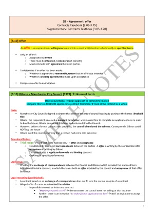 I used these notes to receive a High Distinction Mark (85) in Principles of Private Law in 2016. These notes have been comprehensively put together from the reading guide, sorted into each week. They contain theorist critiques of foundational theories in both CONTRACTS and PROPERTY and case summaries of every case included in the reading guide. My notes are 235 pages (so very detailed!) and are all COLOUR CODED and NEATLY ORGANISED into different subsections, tables and headings. They also have MINI-PRACTISE QUESTIONS, DIAGRAMS and PICTURES integrated into the notes, with a scaffold for answering exam-like questions, to help achieve the best possible mark. I hope these notes will be as useful to you as they were for me in Private Law. Having notes COLOUR CODED and NEATLY ORGANISED was a real asset in a time pressured exam.