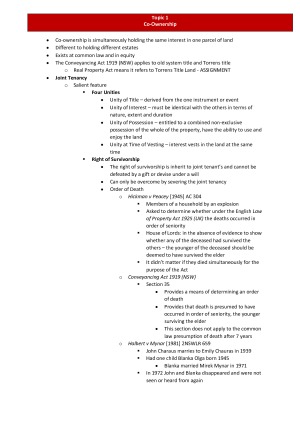 Extensive notes on Property 2 including the following Topics: - Co-Ownership - Old System Title & Priority Rules - Torrens Regime - Mortgages - Leases - Easements & Covenants -