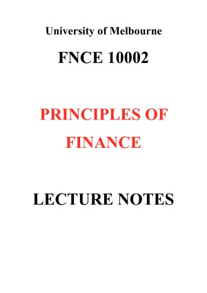 This is a comprehensive compilation of information from FNCE10002 lectures, the textbook, tutorial notes and other useful sources I found online to aid my study. Each section (particularly the harder concepts) is supported by easy to read and understand dot points, diagrams and pictures. I received an H1 (94) for this subject, so I can promise you these are trustworthy notes worth using to boost your mark! :)