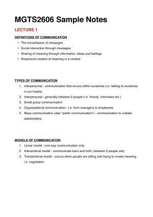 These notes contain lectures 1 - 11. I also have MGTS2606 Final Exam notes which only cover topics assessable on the final exam for the same price.