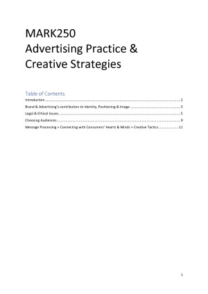 MARK250 Advertising Practice and Creative Strategies notes