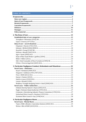 Notes contain lecture notes, readings from the textbook, as well as own research. Each topic of tort has a number of cases listed with extensive case summaries. Have also included every test to apply to each element of tort, as well as comprehensive frameworks and regimes. Detailed contents page is included for convenience.