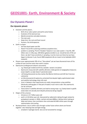 GEOS1001 Earth Environment and Society Notes