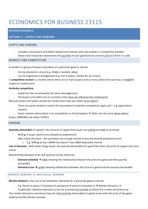 These extensive notes include information taken from lectures, tutorials, various textbooks, and further online research compiled into an easily read format. Contains relevant examples, clear informative graphs and diagrams to aid comprehension. I consistently achieved HDs throughout the semester with these notes. These notes can aid you to easily achieve your desired mark - with 62 thoroughly compiled pages, no topic is ignored!