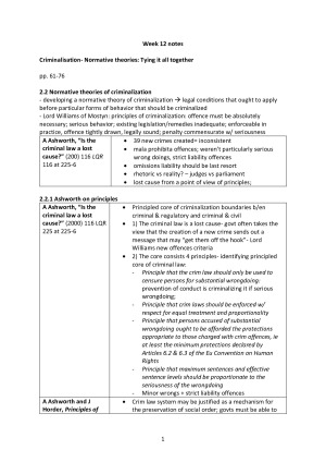CRIM2020: Criminal Law and Justice 1- Summary notes for weekly topics