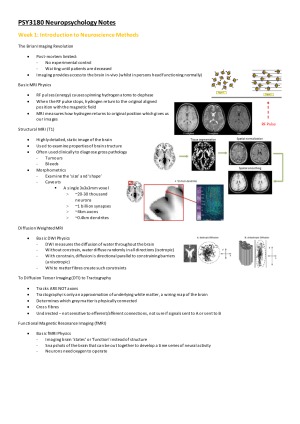 Detailed and comprehensive PSY3051 notes from lectures and prescribed readings. Notes are organised by weekly topics and address all learning objectives. They are concisely summarized and easy to read. Notes are organised into sections with subheadings as well as containing relevant diagrams and pictures.
