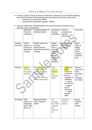 Subject notes for USYD FINC2011
