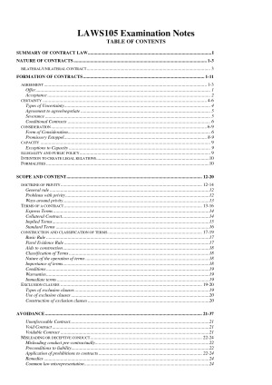 Clear and concise Examination notes for Contract Law, with cases and explanations throughout.