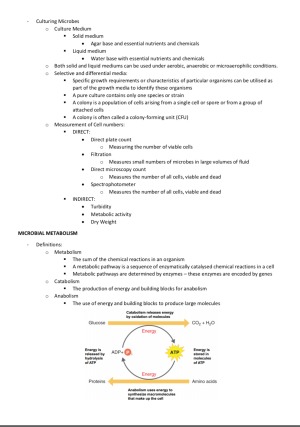 Microbiology can be an extremely tough subject to memorise - these study notes help you to focus on the key principles required to achieve a high level of understanding and comprehension of the microbiological terms. The content ranges from basic understanding of microbial classifications, right through to the advanced mechanisms by which microbes invade and culture within the various regions of the body. There are a number of learning objectives and learning outcomes throughout the notes to help keep the reader focussed whilst also implementing a clinical and practical application of the terms displayed. This is everything you need to get a HD in 2007MSC :)