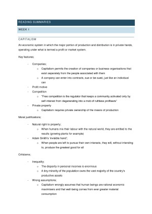 Lecture summaries of main important points, including summaries of readings in some weeks.