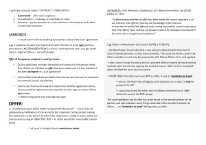 Very very comprehensive contract notes from the lectures by Ilija Vickovich. Topics include: -introduction to contract law - agreement - consideration, equitable estoppel and intention - certainty, completeness, capacity, requirement of writing - express terms - implied terms, construction of terms, exclusion clauses - misrepresentation, misleading & deceptive conduct, mistake - Duress, undue influence, unconscionability, - discharge by agreement, and discharge by performance - discharge by breach, discharge by frustration - illegality - privity