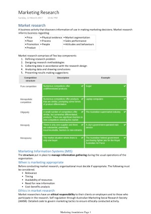 These are detailed high distinction notes from 2017 Marketing Foundations. Summarizing all important information and key points from both tutorials and lectures throughout the semester. Genuinely useful during exam period, reading the ppt slides is a hassle and useless, these notes were my only revision and I received a High distinction. Sound like a lot of pages, but it is a full semester and includes various diagrams.