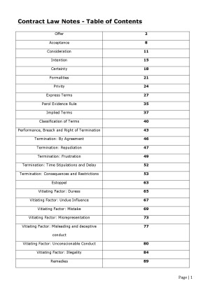 I received a distinction grade following the use of these notes in the exam. This set of Contract Law Exam Notes provides a comprehensive summary of the course material. With easy-to-read headings, dot points and case references throughout, these notes are concise enough for the purpose of being a valuable tool during an open book examination.