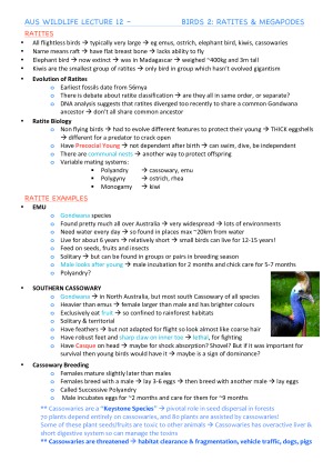 High H1 Australian Wildlife Bio Notes ZOOL20004