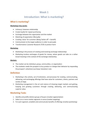 This is a summary of MKTG90004 Marketing Management from H1 student! The summary includes lectures week 1-12 plus the additional reading from each week! All essential materials that you need to prepare for your exam is all here! Go grab one and be confident for your final exam!