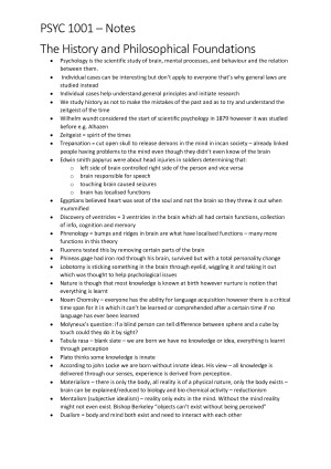 Detailed notes from each Lecture throughout each topic of PSYC 1001.
