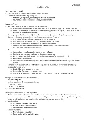 A complete set of notes for WORK2227 including all lecture notes and tips.