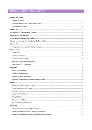 A very well summarised, detailed set of full notes for Property Law at Macquarie University. Contains summaries of key cases, and all material from the whole course. I received both a High Distinction for this course, and received the Highest Achiever Award for topping this subject. I wouldn't have done it without these notes!
