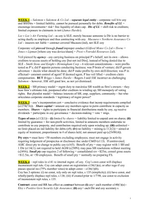 For the Company Law exam, you're only able to take in a VERY limited amount of notes into the exam. These notes contain every key case, piece of legislation and commentary that you'll possibly need. I ended up getting a mark of 88, and coming first in the subject - so these notes definitely help :)
