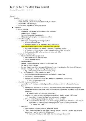 SLSS1003 Law and Contemporary Society notes - Sorted by lecture topics - Comprehensive: All assessable ideas covered - Reflects recent course restructure - Covers all syllabus points - Clear idea frameworks for almost any essay required to write