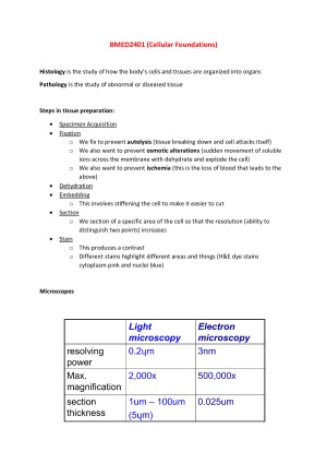Very detailed BMED2401 notes covering all the lectures. Use a lot of diagrams and text boxes to better explain complicated ideas. The last few pages are my notes I created to help myself study for the microbiology theory of prac assessment that makes up a large part of the unit mark.