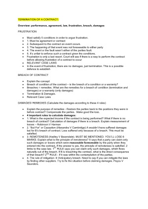 These notes give a concise step by step description of what needs to be included in each question given for the final exam. Each topic is broken down and explained in depth INCLUDING THE RELEVANT CASE LAWS THAT MUST BE INCLUDED IN ORDER TO BE AWARDED DECENT MARKS!!!! The perfect tool to refresh over the entire course and get you perfecting your answers so that you're fully prepared for any questions that might be asked. Contains: Termination Of A Contract Acl – Misleading & Deceptive Conduct/Unfair/Unconciosnable Conduct Acl – Consumer Guaruntees Torts – Negligent Acts Torts – Negligent Statements Agency/Partnership Corporations