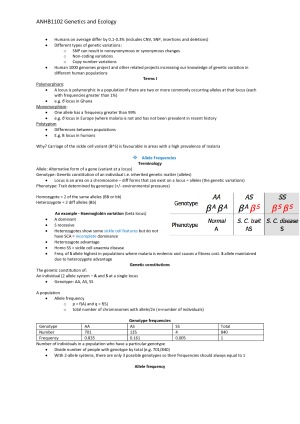Covering all notes for the genetics and ecology lectures (Weeks 9-12). Specific topics include: Evolutionary Forces, Population Genetics, Polygenic inheritance and heritability, Kin selection, and much more.