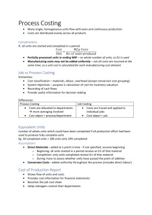 Topics: Process Costing Defects Joint & By Products Master Budgets Direct Cost Variances