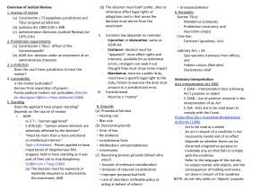 This is a double-sided 4 page summary of the judicial review component of LAW315 The exam has practically the same questions each year and this cheatsheet helped me get a HD in the exam