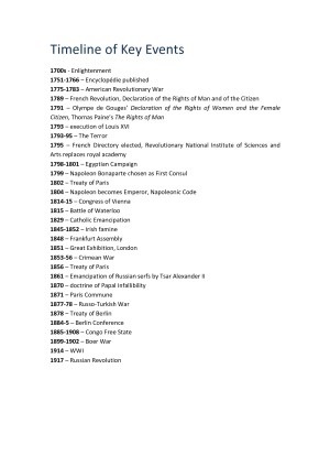 Extremely detailed notes covering all topics from the 18th century to early 20th. Helped me to achieve a distinction grade for this subject. Topics Covered: - Approaching 18th and 19th Century Europe from the 21st Century - 18th Century Europe - The Enlightenment - French Revolution (+ Impact) - Napoleon Bonaparte - 19th Century Politics - 19th Century Society - Religious Life in 19th Century Europe - Industrialisation in 18th and 19th Century Britain - Urban and Rural Life - Socialism and Nationalism - Migration in 19th Century Europe - War and Technology - Imperialism Abroad - Imperialism at Home - Citizenship and Belonging - Urban Political, Social & Cultural Change - End of Century to WWI