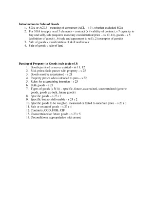 This document can be used as a "spot the issues" (or high level overview) type of document. It outlines the most pertinent things to look for in hypotheticals. It should be used in conjunction with my exam notes for best results. I received a distinction in the exam and the unit overall.