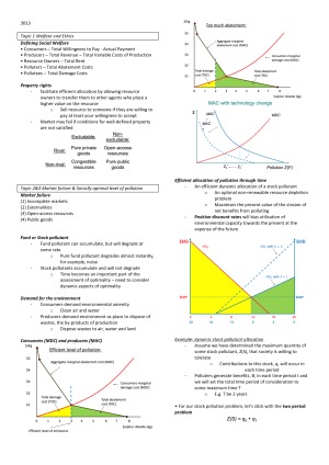 Lecturer: Shauna Phillips Topic covered: Welfare and Ethics, Market failure & Socially optimal level of pollution, Tools for Environmental Protection, Growth/Trade/Env and Valuing the environment In-depth notes contain words, graphs and tables.