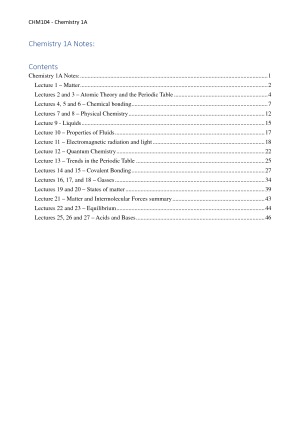 These are my notes from Chemistry 1A. They cover all lectures and topics, and were developed from the lectures, practical classes, the textbook and other online sources. Everything is in dot-point form so that it is easier to remember.