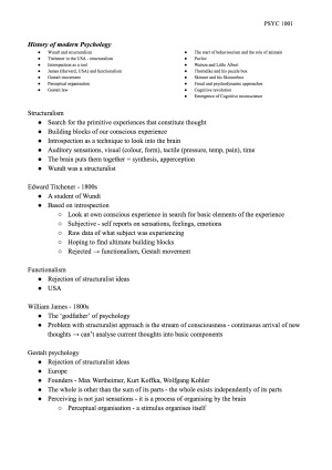 I completed PSYC1001 in semester 1 of 2017 and achieved a Distinction. I made these notes using all available resources - including lecture material, relevant tutorial material and readings for the History and Philosophical Foundations of Psychology topic. Studying with my extensive notes will enable you to get a mark like mine or higher!! These notes are extremely detailed and provide you with all the information you need for this topic in the final exam.