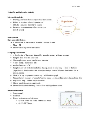 I completed PSYC1001 in semester 1 of 2017 and achieved a Distinction for this subject. I made these notes using all available resources - including lecture material, relevant tutorial material and readings for the Science and Statistics topic. Studying with my extensive notes will enable you to get a mark like mine or higher!! These notes are extremely detailed and provide you with all the information you need for this topic in the final exam.