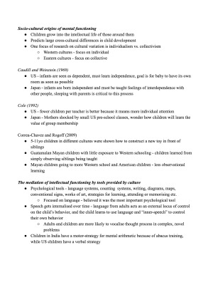 Distinction Developmental Psychology notes - PSYC1001 (Psychology major, Advanced Science student)