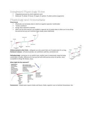 These Integrated Physiology notes enabled me to obtain a High Distinction in this subject. These cover all material from the lectures throughout the semester. The topics it covers are: 1. Membranes, Gradients and Homeostasis 2. Cell communication, Signalling and Oxygen Transport 3. Neurophysiology 4. Muscle Physiology 5. Central Nervous System 6. The Cardiovascular System 7. Exercise Physiology Furthermore, these notes contain information and explanations of concepts that are important when understanding the tutorials and laboratories in this course.
